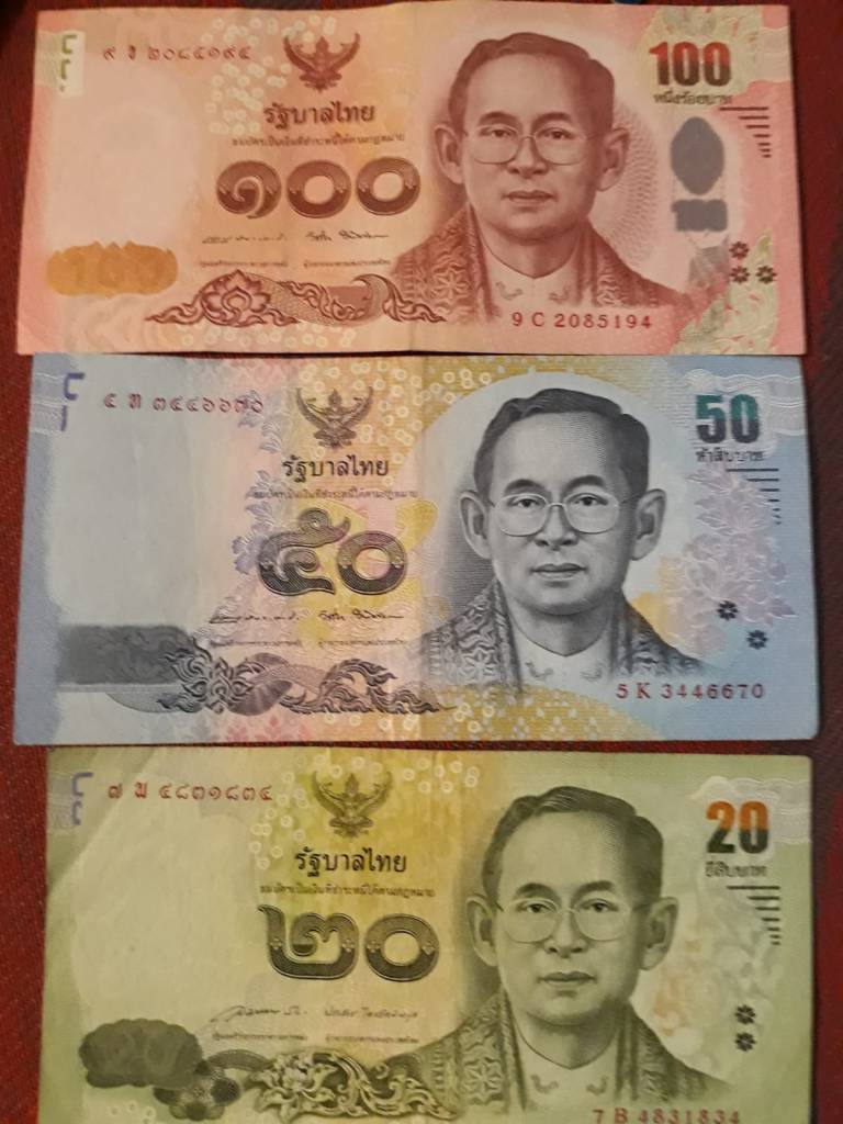 La moneda de Tailandia es el bath. Los billetes pueden ser de 20, 50, 100, 500 y 1.000 bath y las monedas de 1, 2, 5 y 10 bath. Las fracciones más pequeñas son satang pero no vimos.